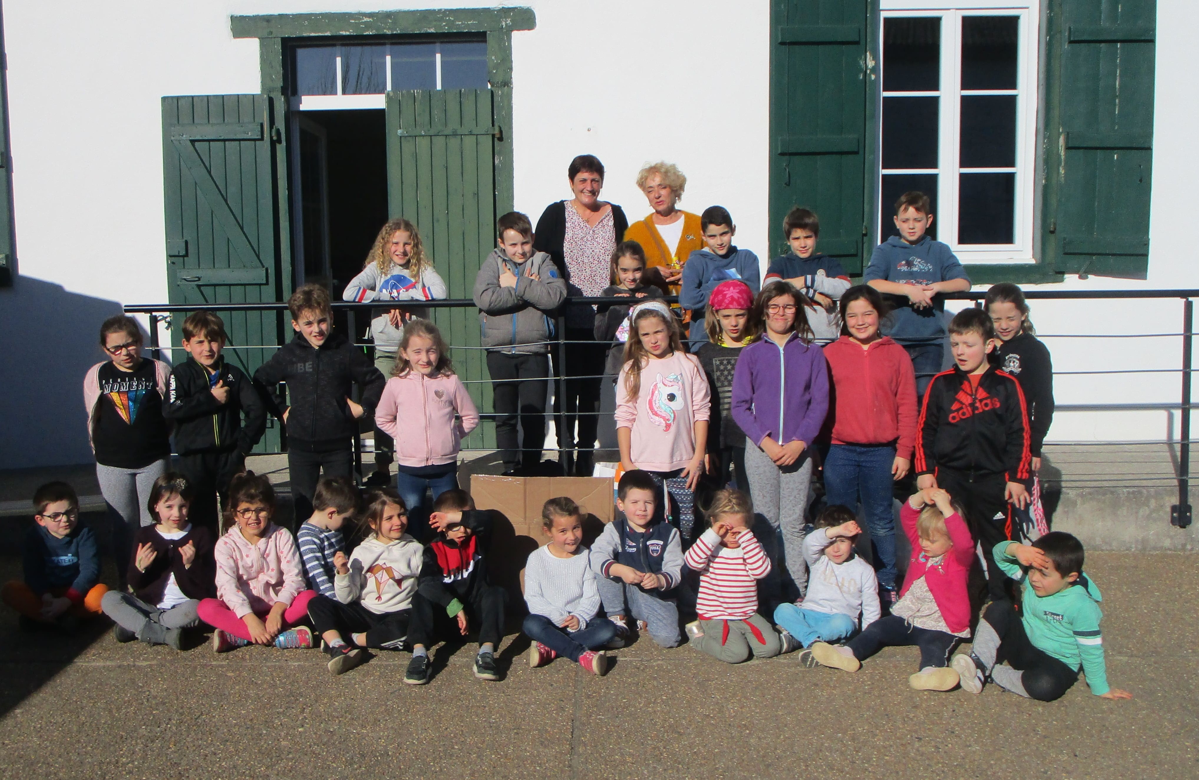 Deux bénévoles des Restos du coeur d'Ayherre sont venus chercher les "cadeaux" récoltés jusqu'à l'école pour les distribuer ensuite aux personnes en situation délicate.