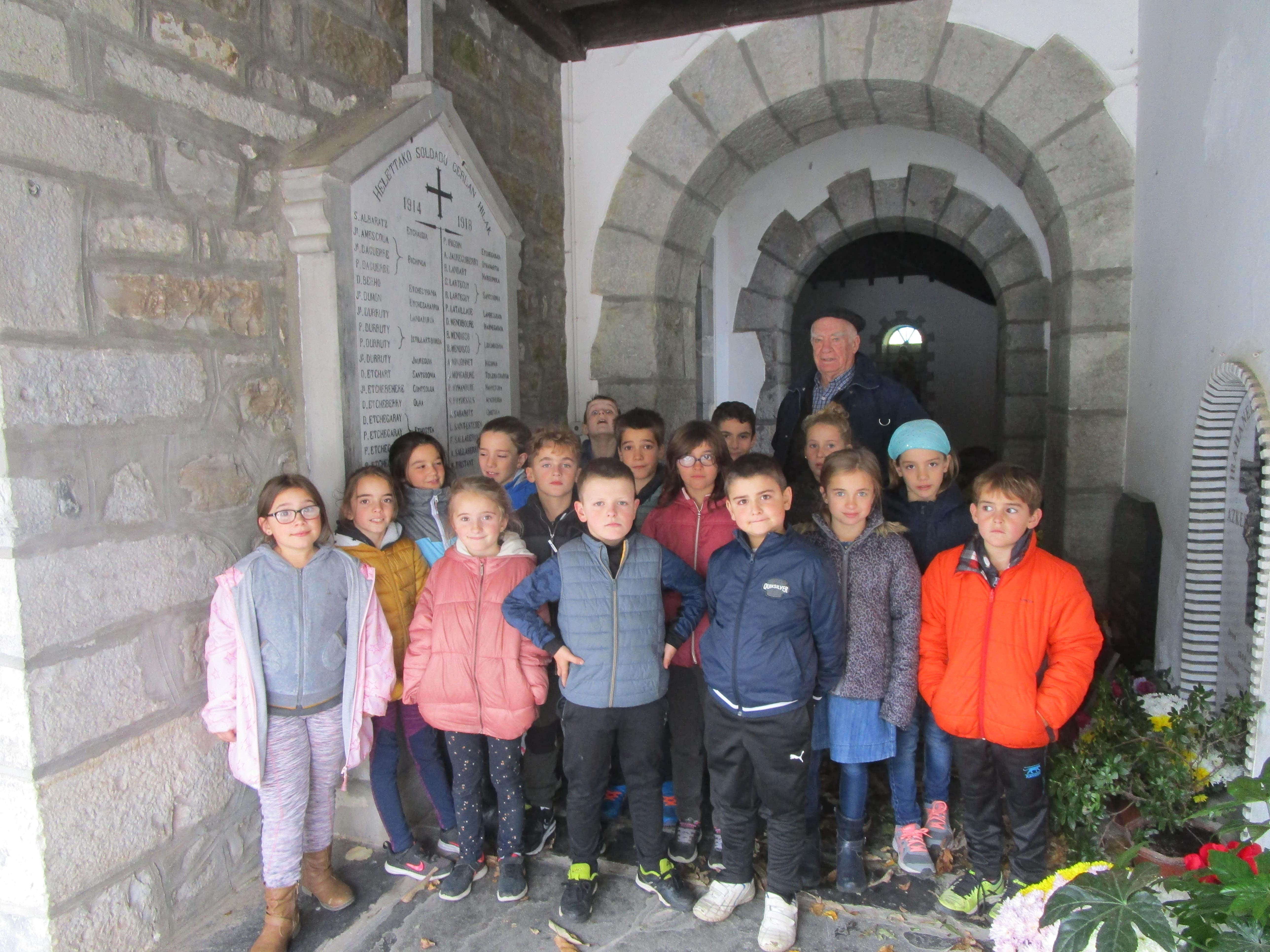 Comme chaque année, Monsieur Curutchet, vétéran de la guerre d'Algérie, a expliqué l'histoire des habitants d'Hélette morts au cours des guerres du XIXième siècle aux enfants du village. Ces soldats français se sont battus pour que nous puissions vivre libres. Il a demandé aux enfants de transmettre son message de paix aux générations suivantes.