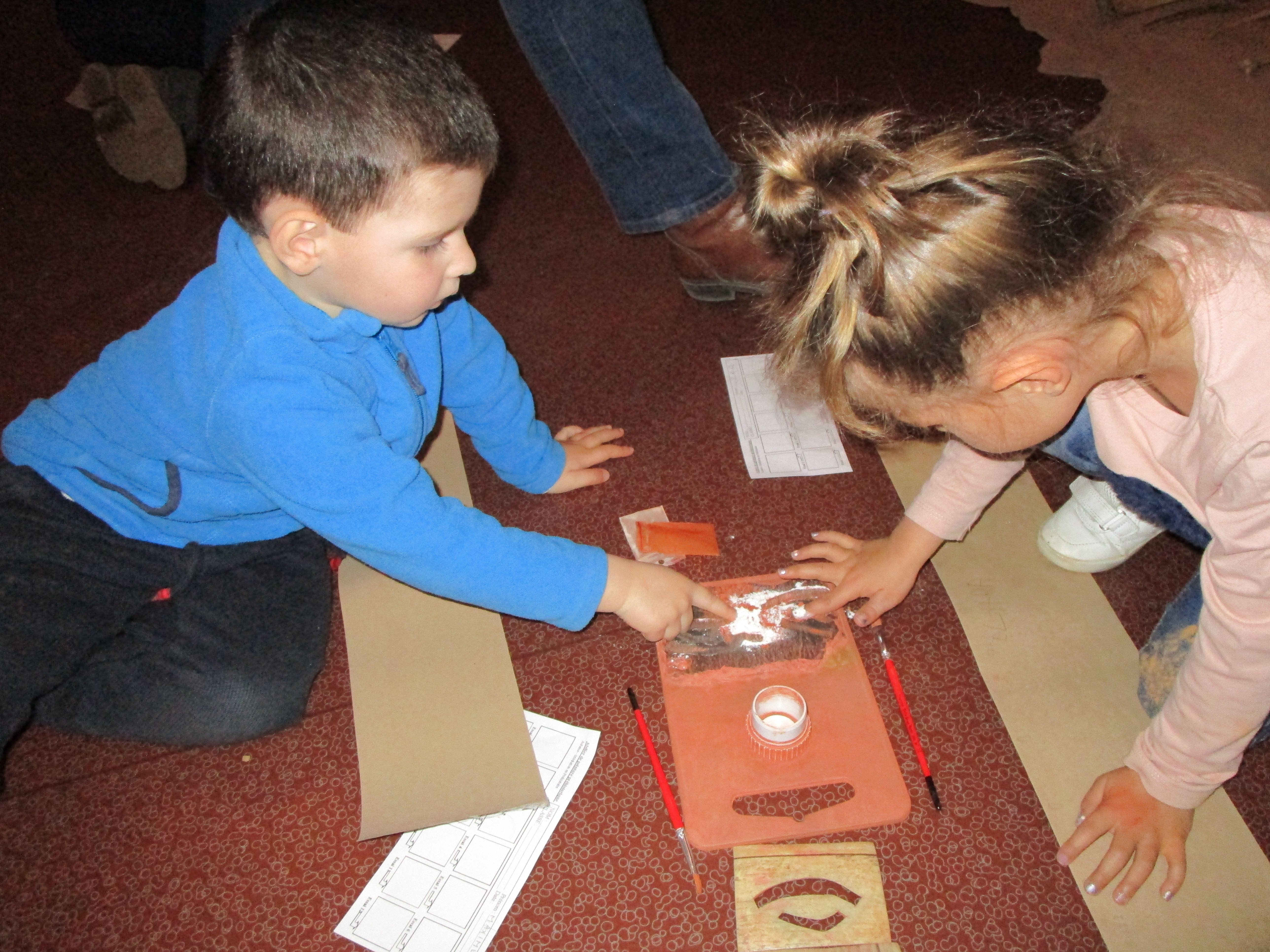 Ainsi, nos élèves découvrent et mettent en pratique les techniques de peinture de la "vague" et de l' "empreinte" en utilisant les ocres de couleurs différentes. Ils fabriquent des bijoux à partir d'une pierre friable.