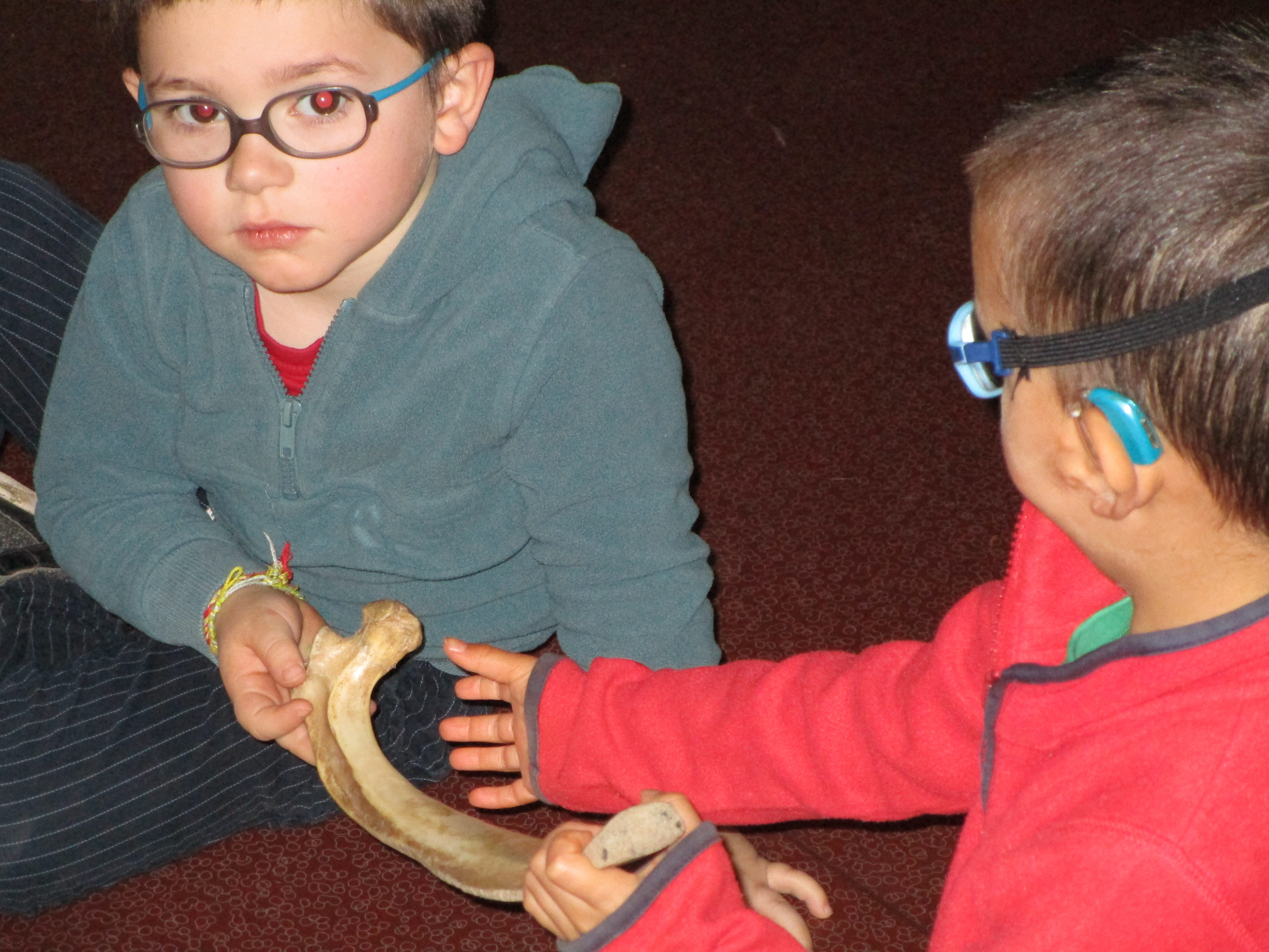 Nous avons participé à des ateliers sur les 5 sens dont l'objectif était d'imaginer si ces odeurs, bruits, traces, objets ont pu être perçus par nos ancêtres préhistoriques.