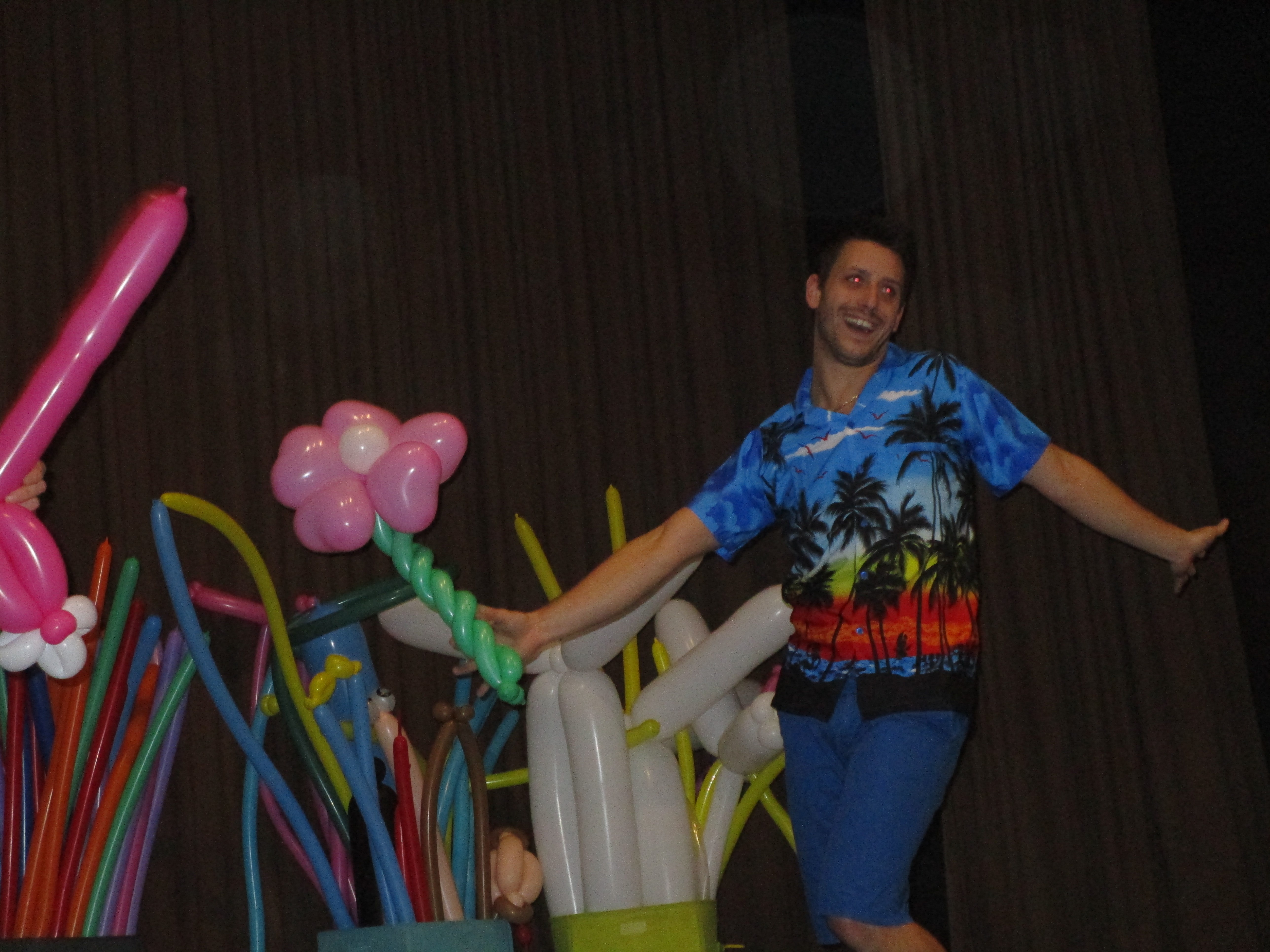 Et c'est le début d'un spectacle musical rythmé et dynamique durant lequel les deux artistes enchaînent la création de sculptures avec des ballons de baudruche de toutes formes !!!
