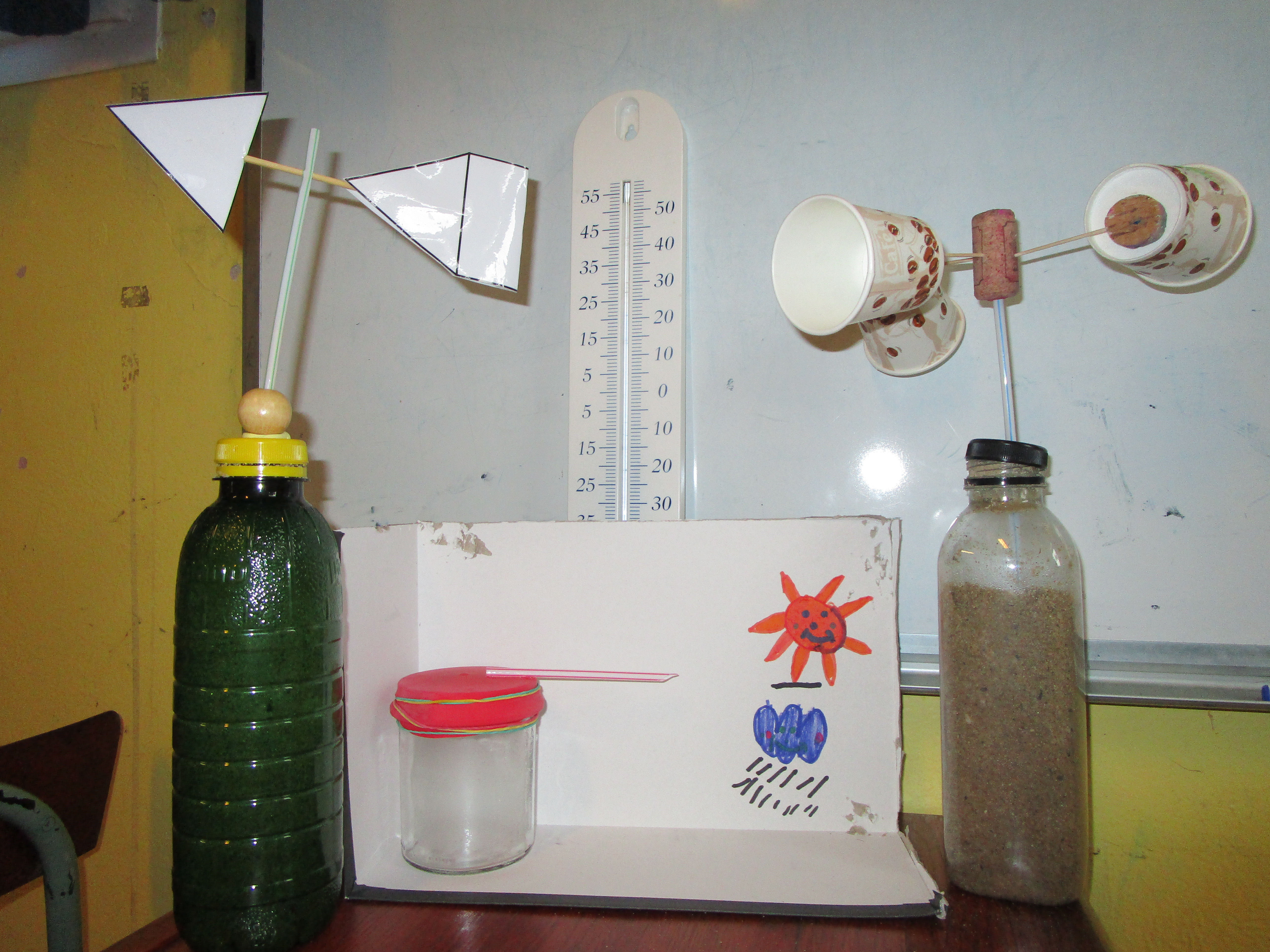 Pour cette année, notre thème c'est "les quatre éléments". Nous parlons de la météo, c'est pour cela que nous avons fabriqué: