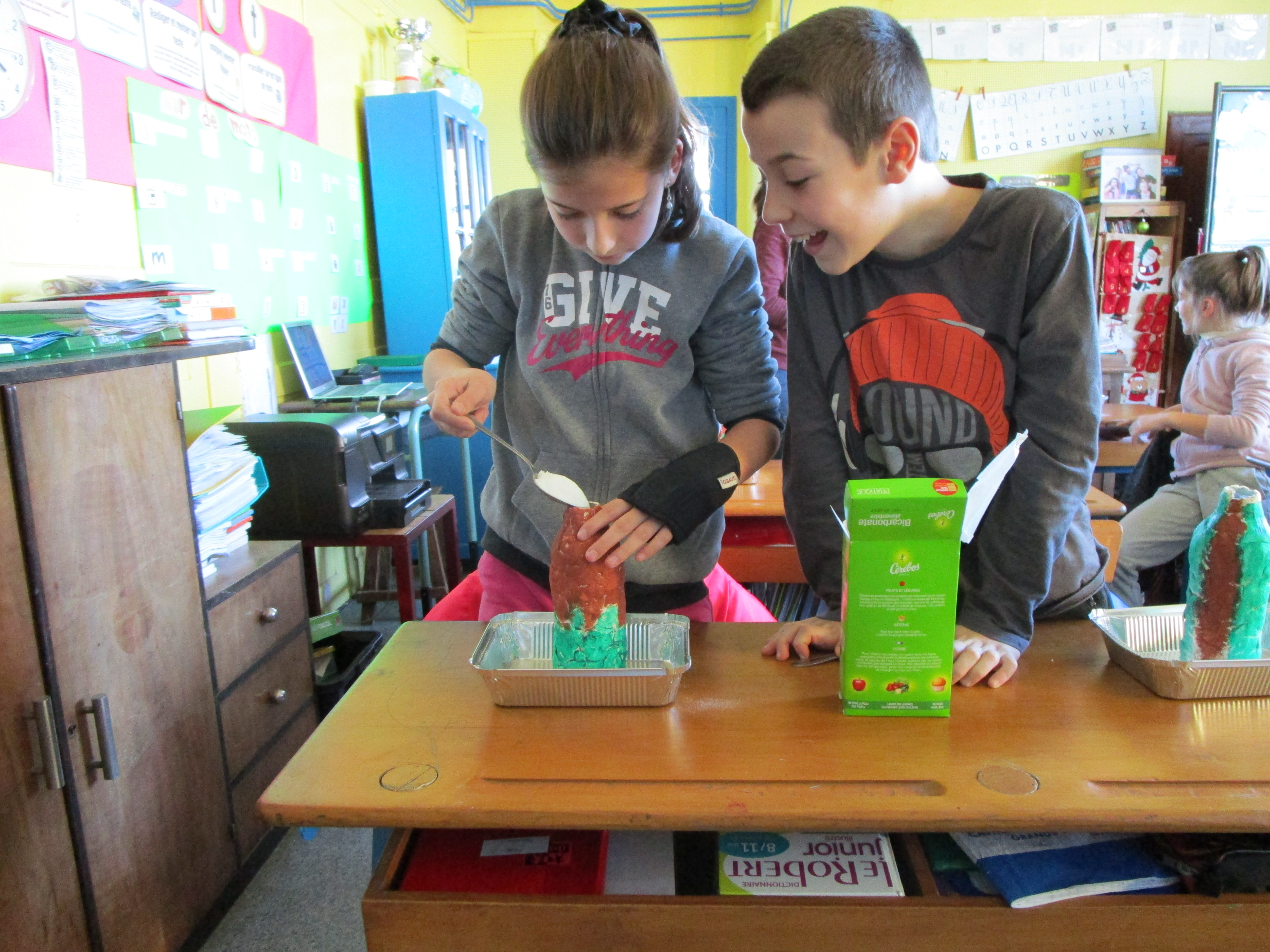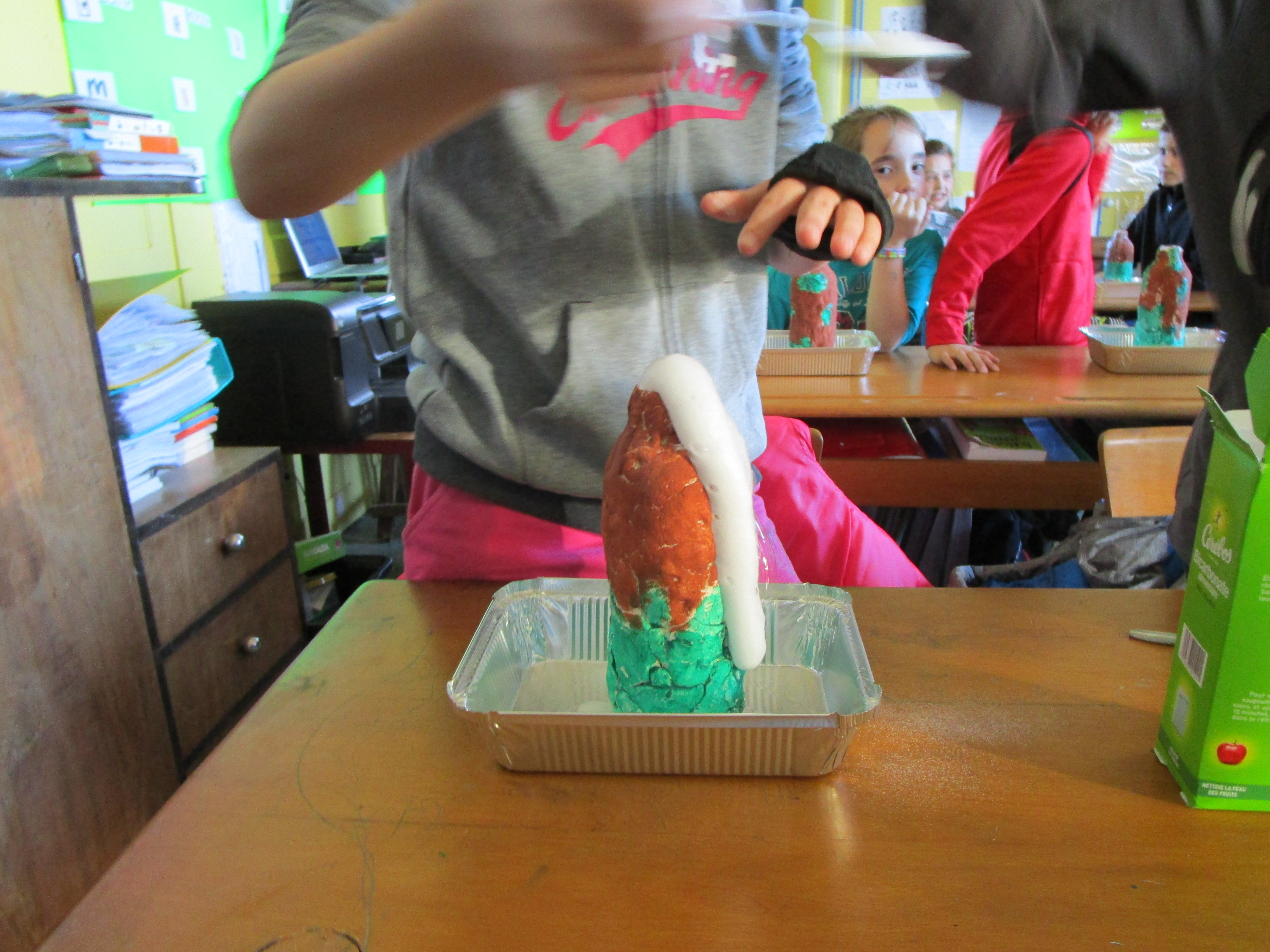Ils sont passés ensuite à la pratique : chacun a fabriqué un volcan et a pu tester une forme d'éruption.